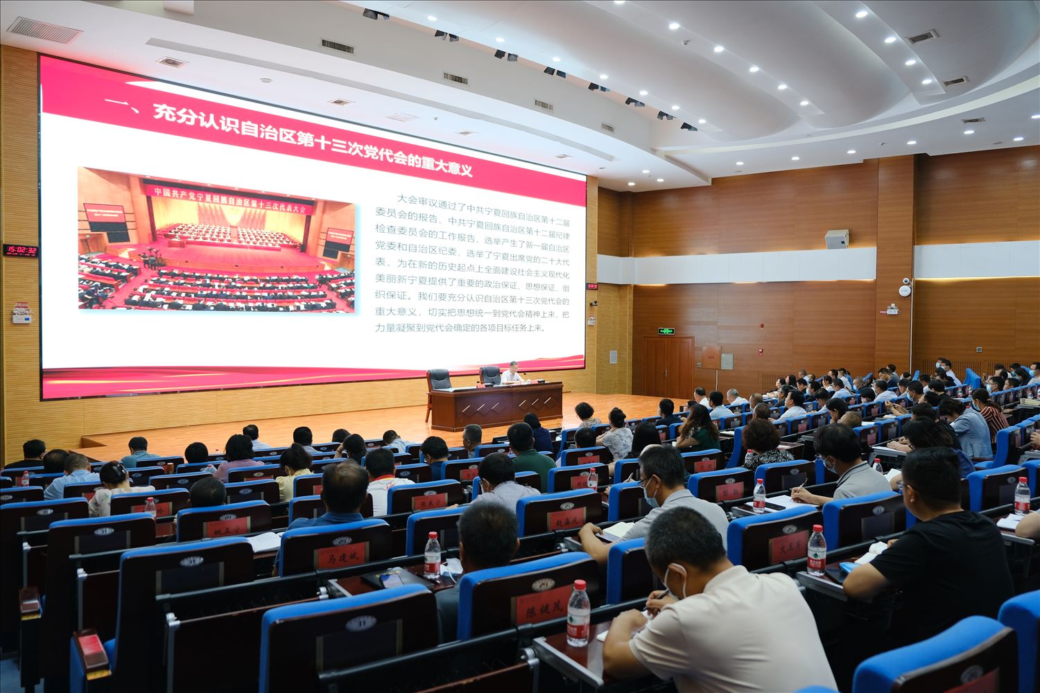 6月23日,学校在雁湖校区尚行会议中心举办学习宣传贯彻自治区第十三次党代会精神专题宣讲报告会。会议特邀自治区第十三次党代会宣讲团成员、自治区党委政法委常务副书记张自军作专题宣讲报告。全体校领导,处级干...