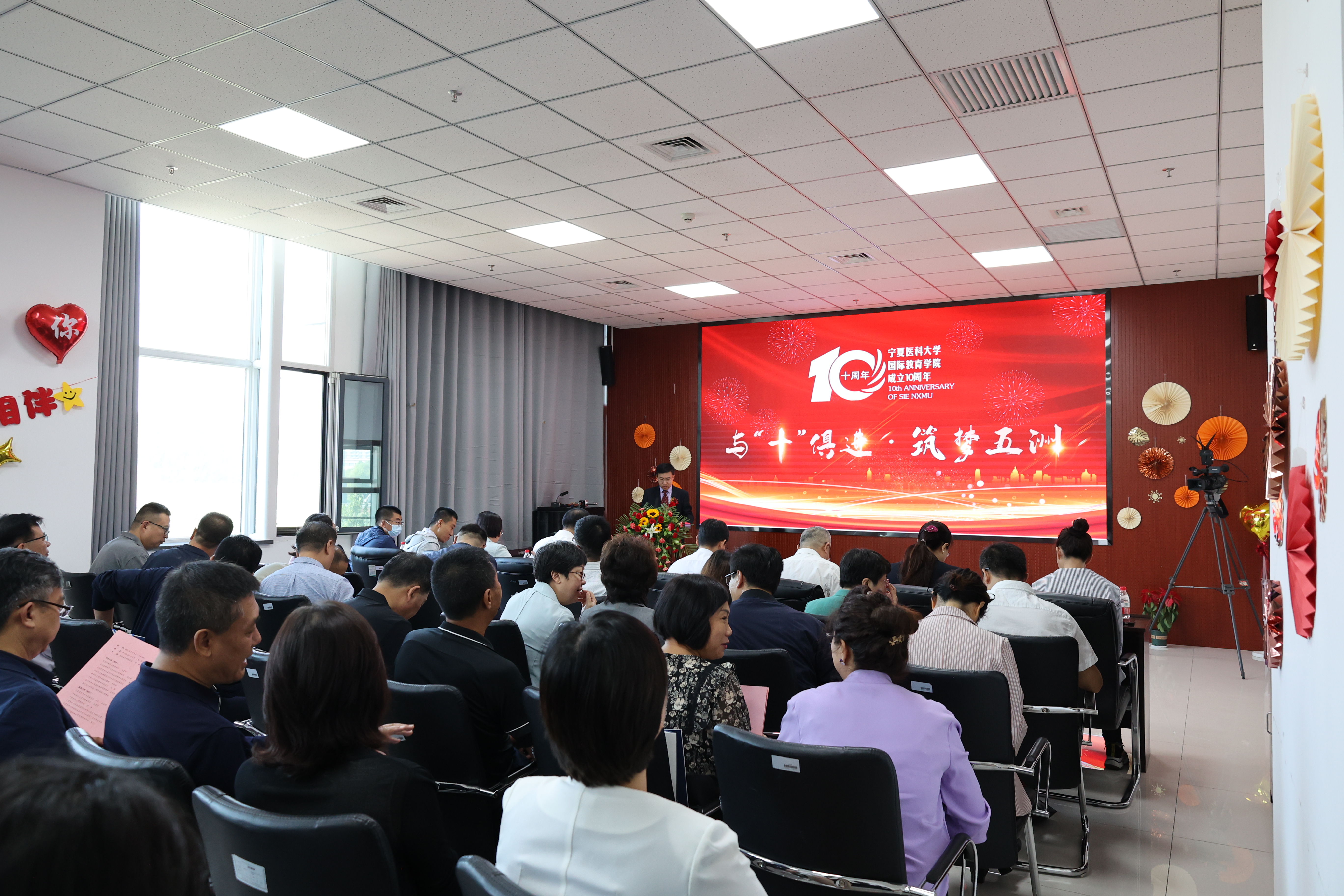 9月9日上午,国际教育学院在雁湖校区知行楼举办“与‘十’俱进筑梦五洲”建院十周年庆祝活动。自治区教育工委副书记王宏伟,自治区外事办、教育厅、卫健委、新华社宁夏分社、银川市公安出入境管理局、宁夏大学国...