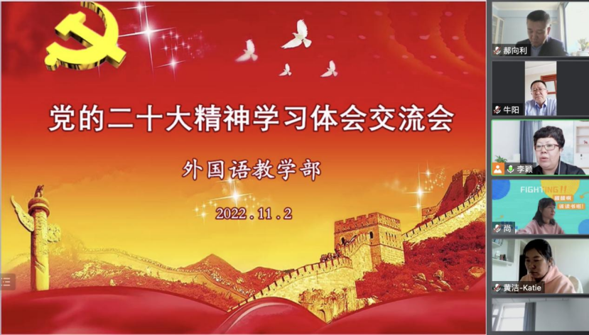 11月2日上午,外国语教学部线上召开党的二十大精神学习交流会。学校党委副书记牛阳,外国语教学部全体教职工参加会议。会议由外国语教学部党总支书记李颖主持。会上,集中学习了中共中央关于认真学习宣传贯彻党的...