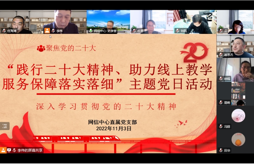 11月3日下午,网络信息中心直属党支部开展了学习贯彻党的二十大精神主题党日活动。学校副校长杜勇,网络信息中心13名教职工参加活动。活动由网络信息中心直属党支部书记李伟主持。会上,集中学习了党的二十大报告...