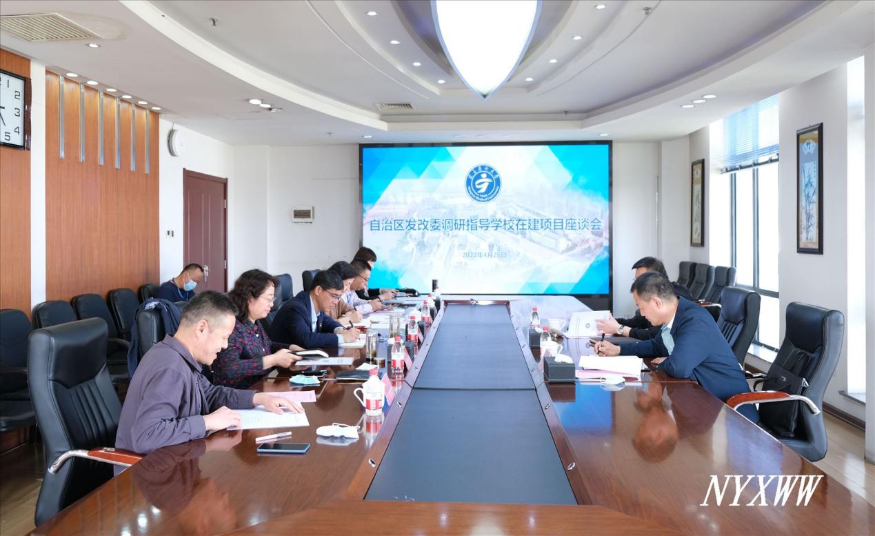4月25日下午,自治区发改委党组成员副主任杨瑞军和社会处处长姚永昌一行到学校调研已建和在建工程项目,学校校长姜怡邓、副校长刘志宏、郝银菊等陪同调研。