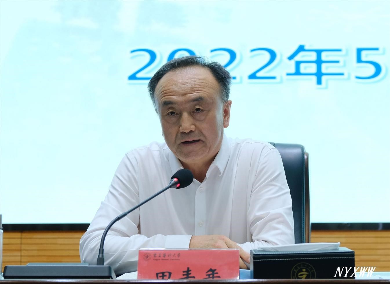 田丰年以深入学习贯彻习近平总书记关于基层党组织建设重要论述和新时代党的建设总要求为根本遵循,着眼行业系统特点,紧贴学校工作实际,突出问题导向原则,围绕评星定级工作的重要意义、基层党建的成效特点、存在问题的根本原因,以及通过开展评星定级工作促进基层党建质量全面提升等方面,从政治、思想、组织、制度和实践等维度进行了全面阐述。他指出,基层党组织评星定级是自治区党委加强全区基层党建工作的常态化做法,是贯彻落实自治区教育工委“四强化六提升”工程的具体要求,学校各级党组织要高度重视,充分认清活动开展的重要意义和自身党建工作中存在的问题和薄弱环节,按照分类指导、以评促建的要求,注重补齐短板,补强学生支部的建设,有效发挥各类党支部的“运动终板作用”,切实把评星定级工作的出发点和落脚点放在全面提升基层党建工作的质量上来。要突出抓党支部标准化规范化建设,以新时代党的建设总要求和政治建设为统领,既要把党支部建强、更要把党支部建活,让党支部切实发挥好战斗堡垒作用。要突出抓党支部书记的素质能力提升,落实“书记抓、抓书记”的工作机制,建立健全党支部书记工作例会制,常态化开展支部书记培训,打造业务强政治过硬的书记队伍。要突出抓党员队伍作用的发挥,以发生在身边的党员违纪违法案例为警示,查找并整改党支部在教育、管理和监督党员等方面存在的问题。要突出党建与业务的深度融合,把党建工作机制融入业务工作,用业务工作方法促进党建工作创新发展。以高质量党的建设成绩,迎接党的二十大和自治区第十三次党代会的胜利召开。