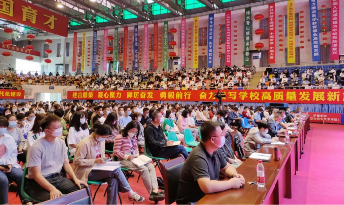9月1日上午,学校党委书记田丰年在雁湖校区弘毅体育馆主会场为2022级本专科新生讲授“开学第一课”,双怡校区分会场通过视频同步直播,两千余名新生共同聆听大学第一课。学校党委副书记朱建华主持授课活动。