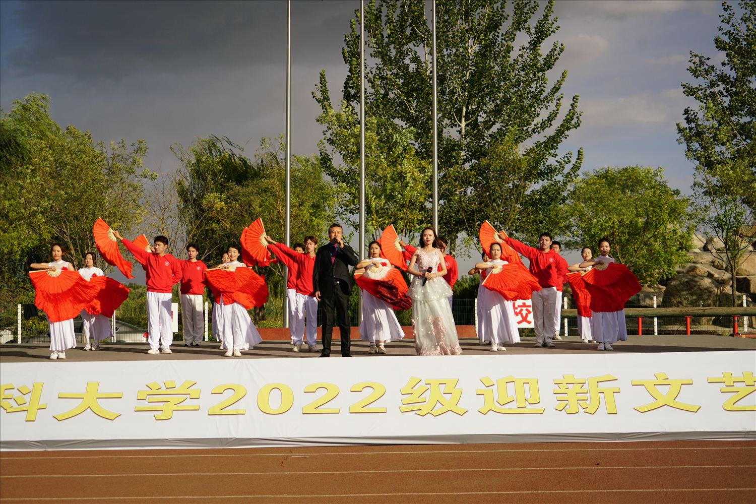 10月8日,学校在雁湖校区足球场举行“喜迎党的二十大 青春绽放向未来”2022年迎新文艺汇演。学校党委副书记朱建华、纪委书记谢波,各单位负责人、老师以及全体同学欢聚一堂,共享青春盛会。