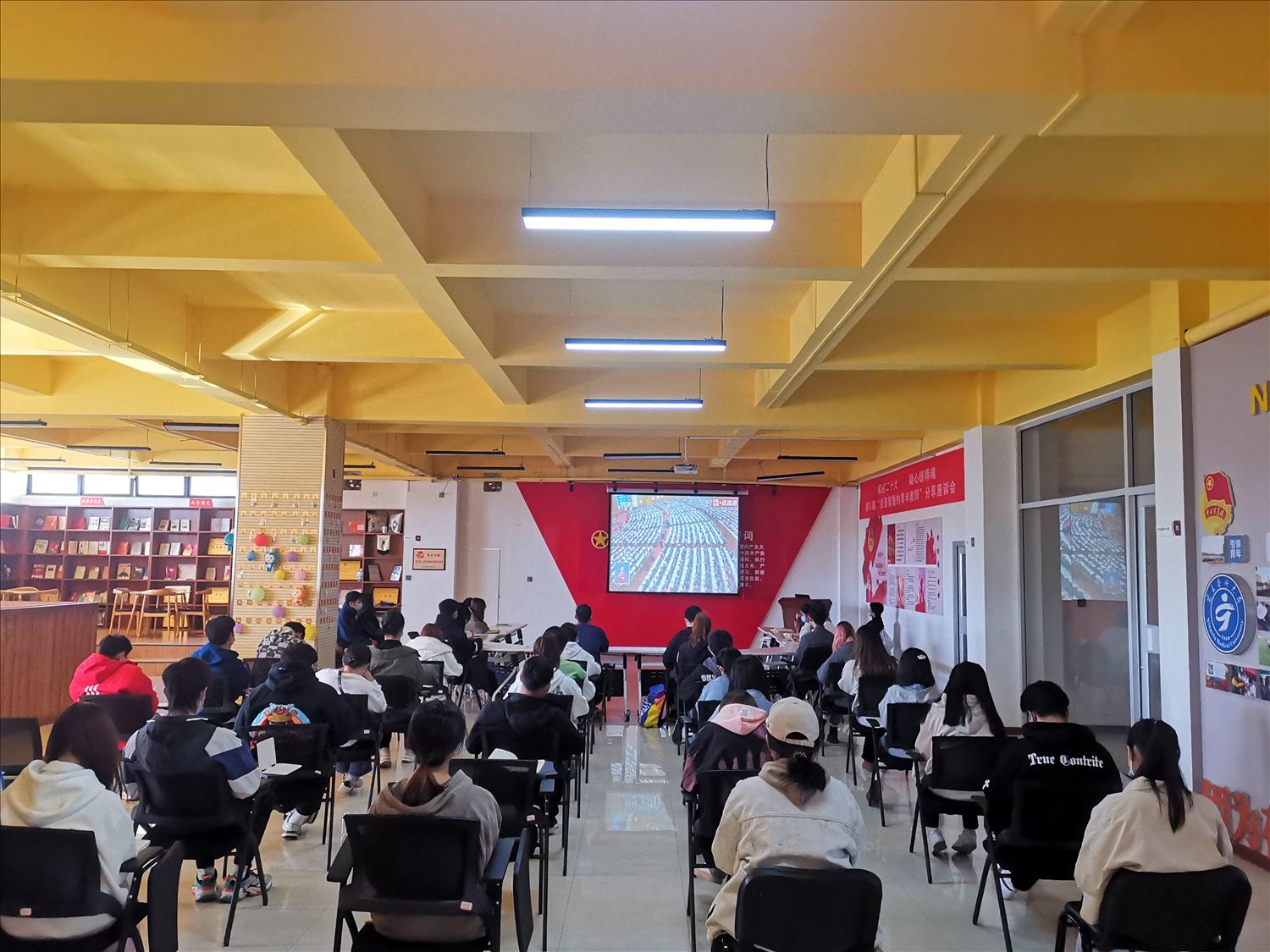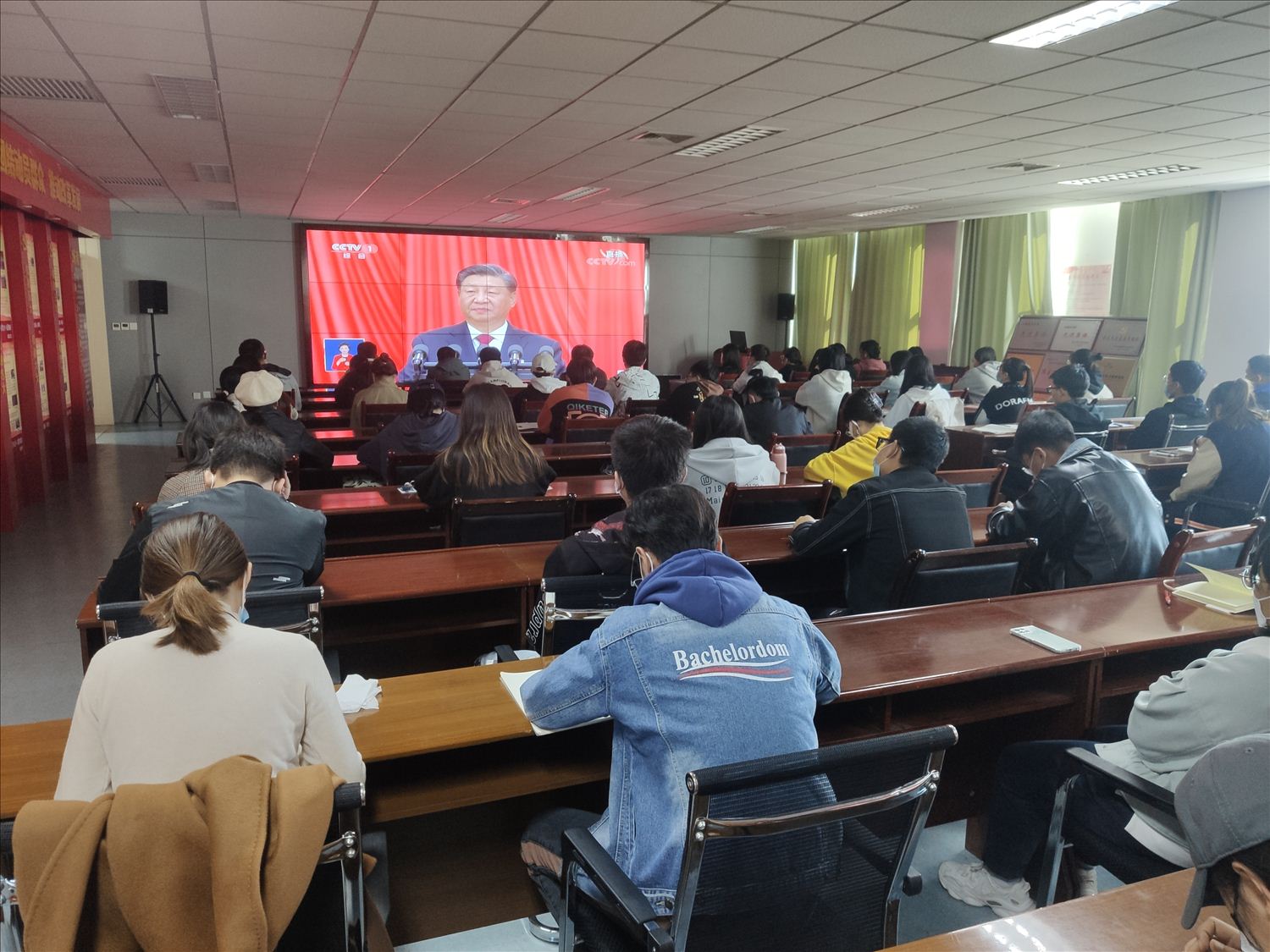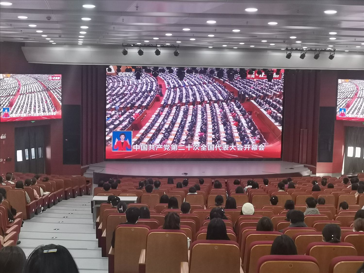 学校认真组织广大党员干部和师生通过电视、广播、网络、手机移动端等平台收听收看党的二十大开幕会,全校师生关注热议党的二十大。在习近平总书记的报告过程中,收看现场不时自发响起热烈的掌声。