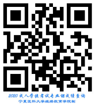 2020年成人教育学位考试成绩查询请扫描下图二维码,查询截止日期2020年12月24日。成绩如有疑问,请在12月17日前与教务处(0951-6980045)联系,望相互转告!