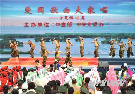 演出中,斯琴格日乐、泽旺多吉、甘萍、万山红、罗宁娜、黄格选等国内知名艺术家纷纷登台,银川市各行各业组成的机关行业方队、道德模范和志愿者方队、民族方队、青少年方队与歌唱演员共同演唱。威斯尼斯团员青年积极配合舞台演出,整齐的方队、饱满的热情、舞动的旗帜、激昂的呐喊,充分展现出了宁医学子良好的精神面貌,成为了方队代表中一道亮丽的风景。