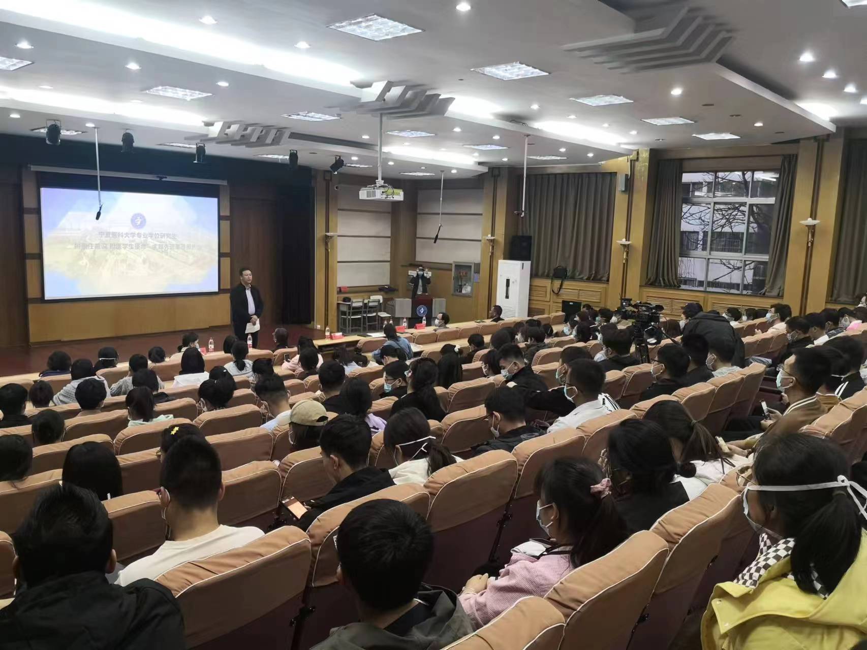 为大力宣传优秀医务工作者的先进事迹,弘扬医者仁心的大爱精神,进一步加强专业学位研究生思想政治教育,提高医学生责任意识和担当精神,3月9日,学校以线上、线下相结合的方式组织召开专题报告会,邀请宁夏回族自治区人民医院院长周玮、1487cc威斯尼斯总医院副院长陈娟分别作专题报告,研究生院、相关培养单位负责人和全体专业学位研究生共计1400余人参加会议。